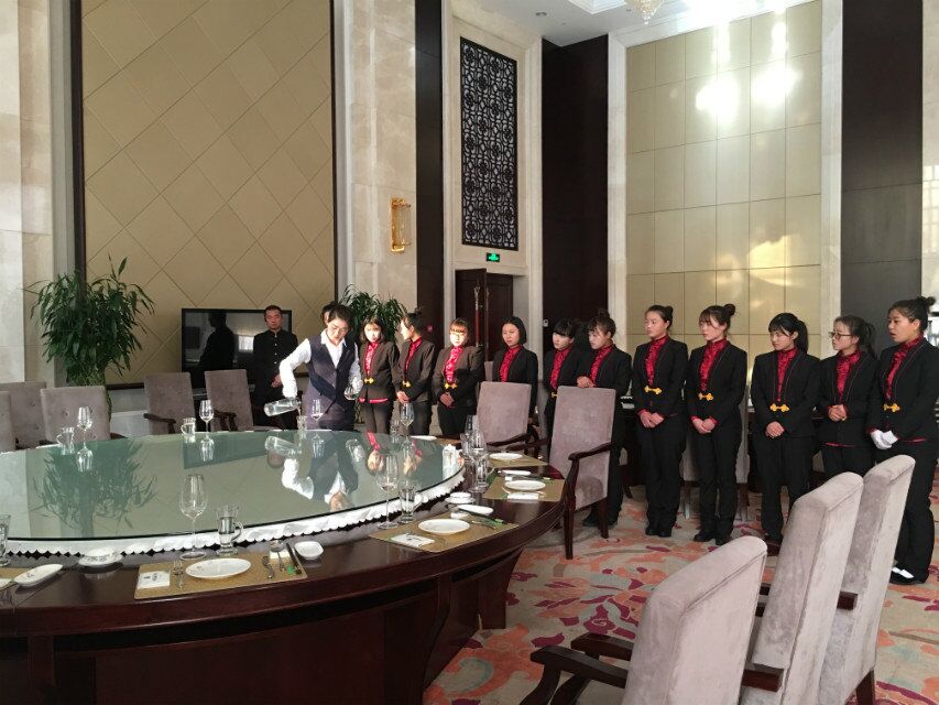 實訓期間,同學們通過誦讀,軍訓等方式體驗了酒店的企業(yè)文化,在客房部,同學們向酒店客房服務員學習并實踐了如何對客房進行清掃及查房,熟悉了客房部的日常工作規(guī)程;在餐飲部實習中,同學們向資深的餐廳服務員學習了如何擺臺、撤臺、點菜、上菜等一系列基本的餐廳服務方法,并對餐廳的服務流程有了具體的了解。