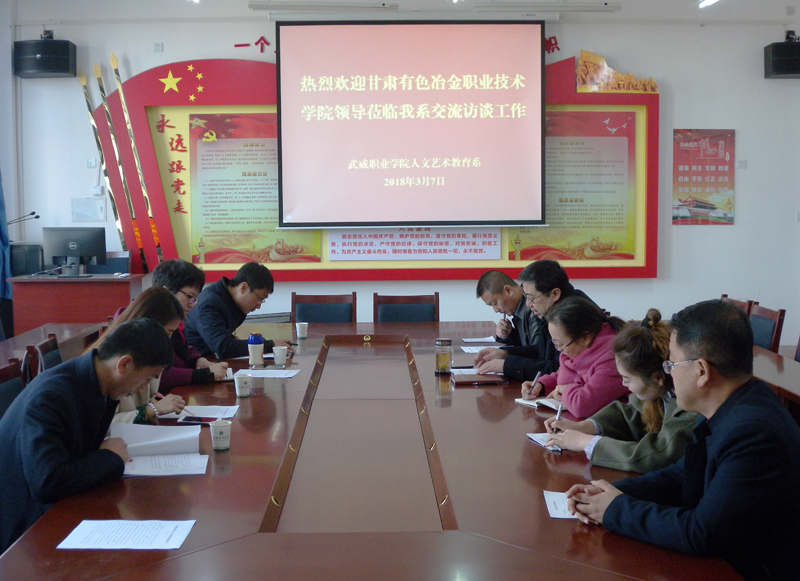3月7日上午,甘肅有色冶金職業(yè)技術(shù)學(xué)院教育系負(fù)責(zé)人妙學(xué)春一行4人到我系進(jìn)行交流學(xué)習(xí),系黨總支書記胡靜峰、各教研室主任參加了會議。