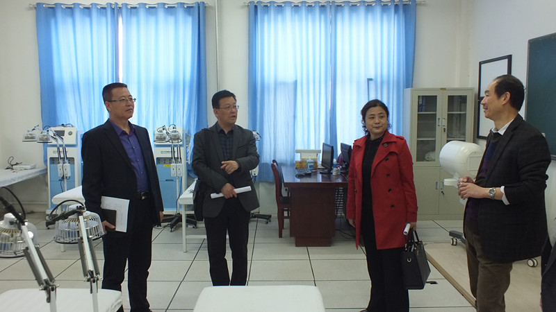 藥學(xué)系主任魏潤明和醫(yī)學(xué)技術(shù)系主任楊如松陪同來賓先后參觀了學(xué)院一期建設(shè)成果以及藥學(xué)專業(yè)實驗室、口腔醫(yī)學(xué)技術(shù)專業(yè)實訓(xùn)室和中醫(yī)康復(fù)治療技術(shù)專業(yè)實訓(xùn)室等。