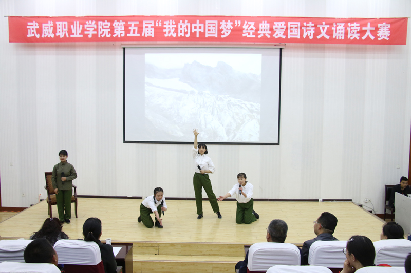 全場比賽以“我的中國夢”為切入點(diǎn),誦詩抒情、借詞言志,傳承中華民族經(jīng)典愛國詩詞和優(yōu)秀傳統(tǒng)文化,培育與踐行社會(huì)主義核心價(jià)值觀。各參賽作品融入了歌曲、場景表演等多種藝術(shù)形式,進(jìn)一步激發(fā)了同學(xué)們的愛國熱情和報(bào)國之志。經(jīng)過激烈角逐,醫(yī)學(xué)技術(shù)與信息管理系選送的作品《永遠(yuǎn)的格桑梅朵》榮獲一等獎(jiǎng);人文藝術(shù)教育系選送的作品《我的墓碑》、護(hù)理系選送的作品《人民萬歲》榮獲二等獎(jiǎng);現(xiàn)代農(nóng)業(yè)技術(shù)系選送的作品《我的爸爸》、汽車工程系選送的作品《海棠花祭》、建筑工程系選送的作品《中國軍魂》榮獲三等獎(jiǎng)。