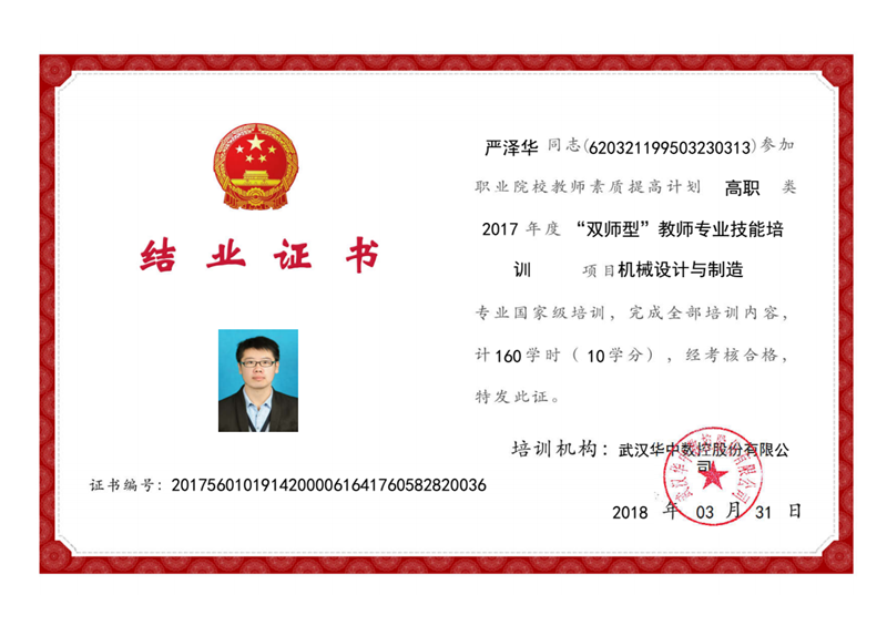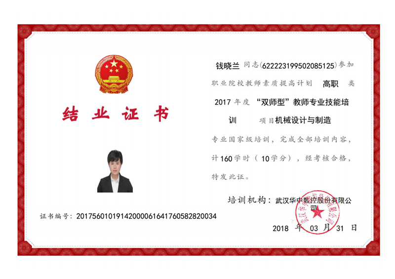 “雙師型”教師專業(yè)技能培訓證書