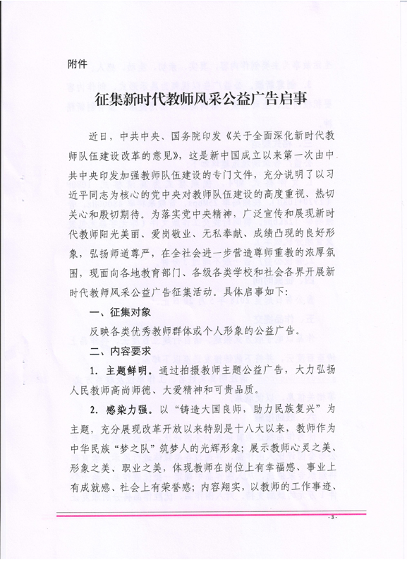 關(guān)于做好征集新時(shí)代教師風(fēng)采公益廣告有關(guān)工作的通知