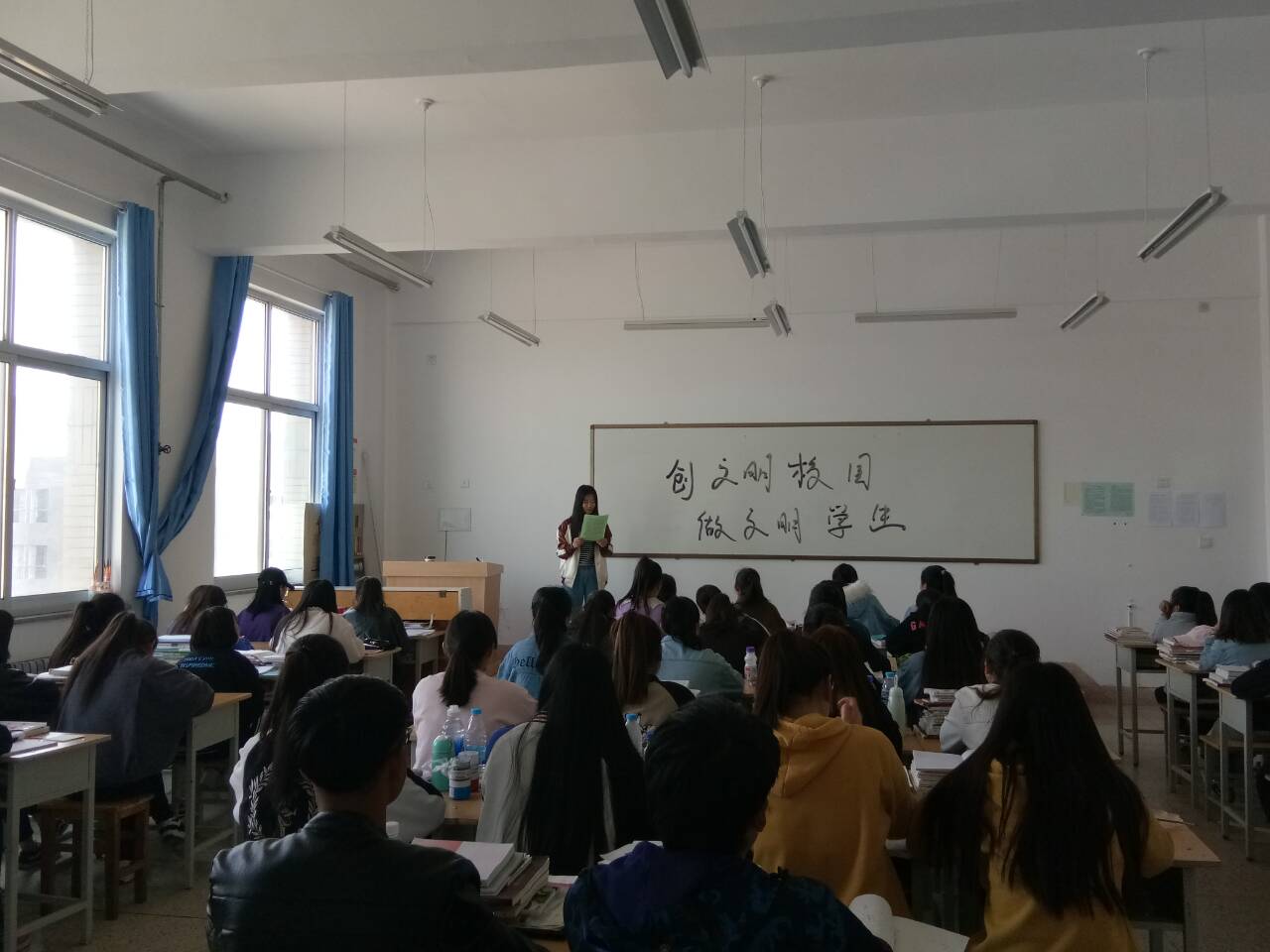 4月20日,人文藝術(shù)教育系組織全體教師學(xué)習(xí)了《中共武威職業(yè)學(xué)院委員會關(guān)于成立創(chuàng)建全國文明城市工作領(lǐng)導(dǎo)小組的通知》《武威職業(yè)學(xué)院創(chuàng)建全國文明城市三年規(guī)劃(2018-2020)》《武威職業(yè)學(xué)院創(chuàng)建全國文明城市2018年工作實施方案》文件精神,通過教研室活動,認(rèn)真學(xué)習(xí)了《你我攜手 共創(chuàng)文明》倡議書,自覺遵守教師行為守則和管理規(guī)范,自覺維護(hù)辦公室環(huán)境,以實際行動踐行文明承諾,以模范行為影響身邊人、身邊事。學(xué)生通過主題班會,學(xué)習(xí)了《創(chuàng)文明校園 做文明學(xué)生》和《共同創(chuàng)建文明城市》倡議書,自覺愛護(hù)公物,不亂貼亂畫,不亂扔垃圾,不講粗話臟話,不隨地吐痰,不破壞公共設(shè)施,用實際行動踐行社會主義核心價值觀。