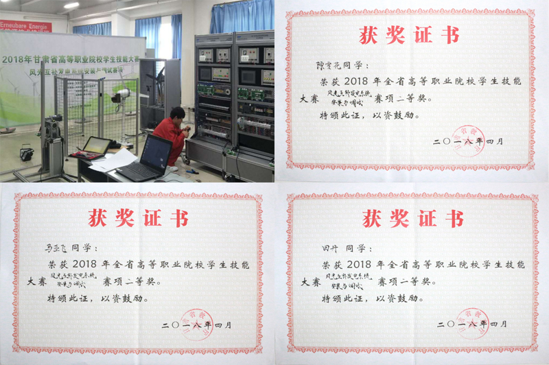 ? ? 4月22日-23日,由甘肅省教育廳主辦的2018年全國職業(yè)院校技能大賽“風光互補發(fā)電系統(tǒng)安裝與調試”賽項甘肅省選拔賽在酒泉職業(yè)技術學院舉行,由我院能源工程系黃述杰、張國祥擔任指導教師,學生馬亞飛、陳雪花、田丹組成的武威職業(yè)學院代表隊再獲佳績榮獲二等獎。