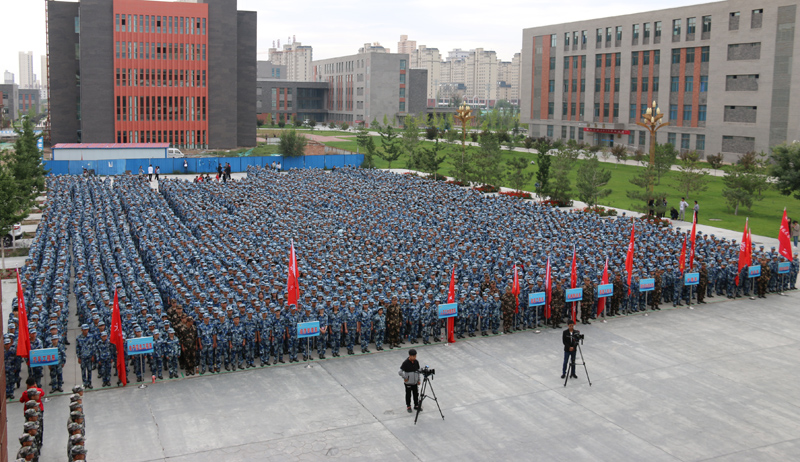 大會(huì)現(xiàn)場(chǎng),田迎春向承訓(xùn)單位授予軍訓(xùn)團(tuán)旗。大會(huì)在雄壯的《中國(guó)人民解放軍軍歌》聲中拉開(kāi)了軍訓(xùn)序幕。