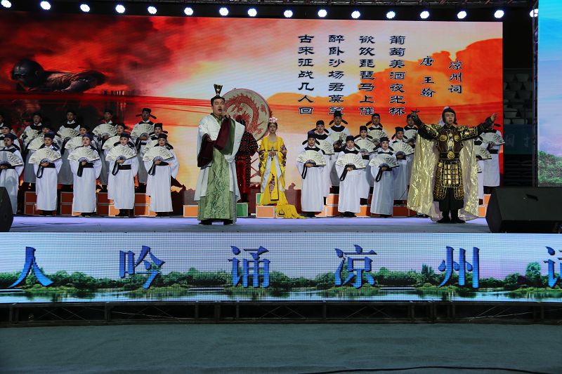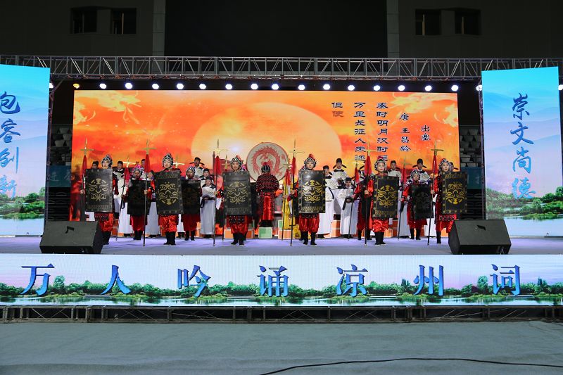 9月9日,來自全市三縣一區(qū)、市直機(jī)關(guān)、市老干局、市工商聯(lián)、市直教育系統(tǒng)選拔出的23個(gè)吟誦涼州詞節(jié)目齊聚武威市體育館,上演了“車馬相交錯(cuò),歌吹日縱橫”的涼州遺韻。學(xué)院推送的節(jié)目《金戈鐵馬入夢涼州》在決賽中成績位列第四,榮獲一等獎(jiǎng),并被市文廣局選送參加第二屆涼州文化論壇暨中國?河西走廊第八屆有機(jī)葡萄美酒節(jié)文藝展演。