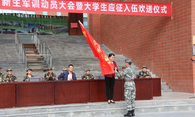 大會(huì)現(xiàn)場(chǎng),田迎春向承訓(xùn)單位授予軍訓(xùn)團(tuán)旗。大會(huì)在雄壯的《中國(guó)人民解放軍軍歌》聲中拉開了軍訓(xùn)序幕。