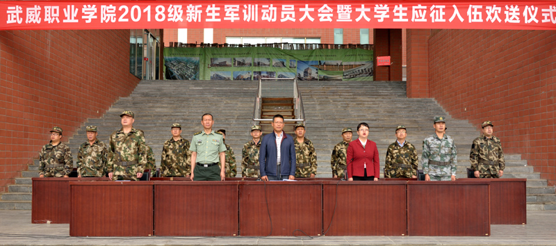 9月5日上午,武威職業(yè)學(xué)院2018級(jí)新生軍訓(xùn)動(dòng)員大會(huì)暨大學(xué)生應(yīng)征入伍歡送儀式在大學(xué)生活動(dòng)中心廣場(chǎng)舉行。學(xué)院副院長(zhǎng)王永緒、田迎春,涼州區(qū)武裝部副部長(zhǎng)韓小偉,工程防化第76旅副營(yíng)長(zhǎng)夏科銀出席儀式。承訓(xùn)單位工程防化第76旅45名戰(zhàn)士,學(xué)院學(xué)工處處長(zhǎng),各系黨總支書記、輔導(dǎo)員、班主任,2018級(jí)全體學(xué)生參加了大會(huì)。儀式由田迎春主持。