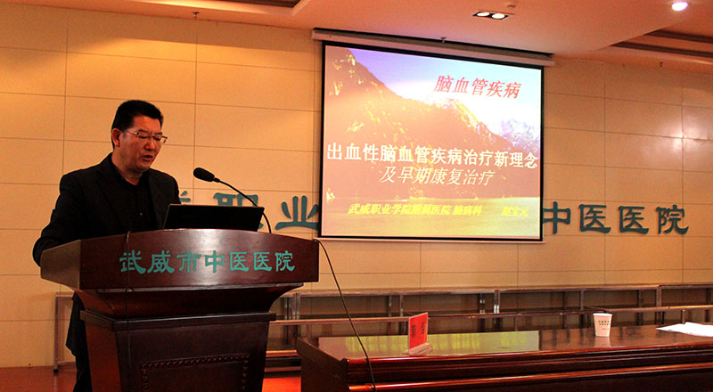 為提高醫(yī)務(wù)人員對(duì)于腦病(腦卒中)的診療和康復(fù)訓(xùn)練水平,推進(jìn)醫(yī)院腦卒中中心的籌備建設(shè),學(xué)院附屬醫(yī)院于11月11日上午,在內(nèi)科七樓會(huì)議室舉辦甘肅省中醫(yī)藥繼續(xù)醫(yī)學(xué)教育項(xiàng)目:腦病診療康復(fù)培訓(xùn)班。醫(yī)院副院長(zhǎng)宗武山主持培訓(xùn)班開(kāi)班儀式,副院長(zhǎng)毛照海致辭歡迎蘭大二院2位神經(jīng)內(nèi)科專家講學(xué)指導(dǎo)工作。醫(yī)院各科室二百余名醫(yī)療骨干參加腦病診療康復(fù)培訓(xùn)班,聆聽(tīng)學(xué)術(shù)報(bào)告。