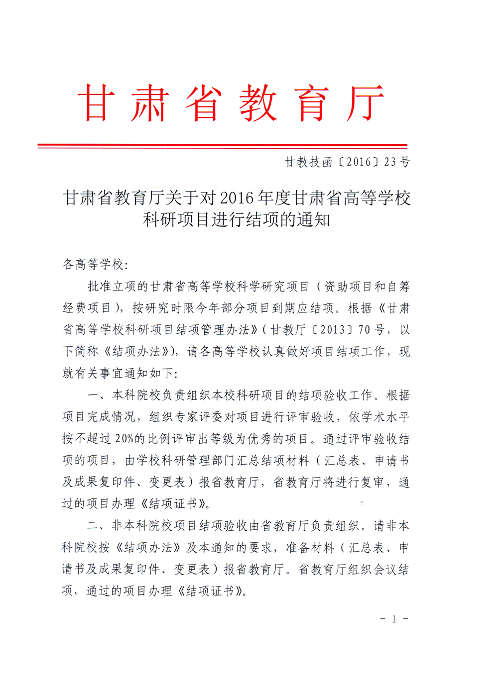 轉(zhuǎn)發(fā)甘肅省教育廳《關(guān)于2016年度甘肅省高等學??蒲许椖拷Y(jié)項的通知》