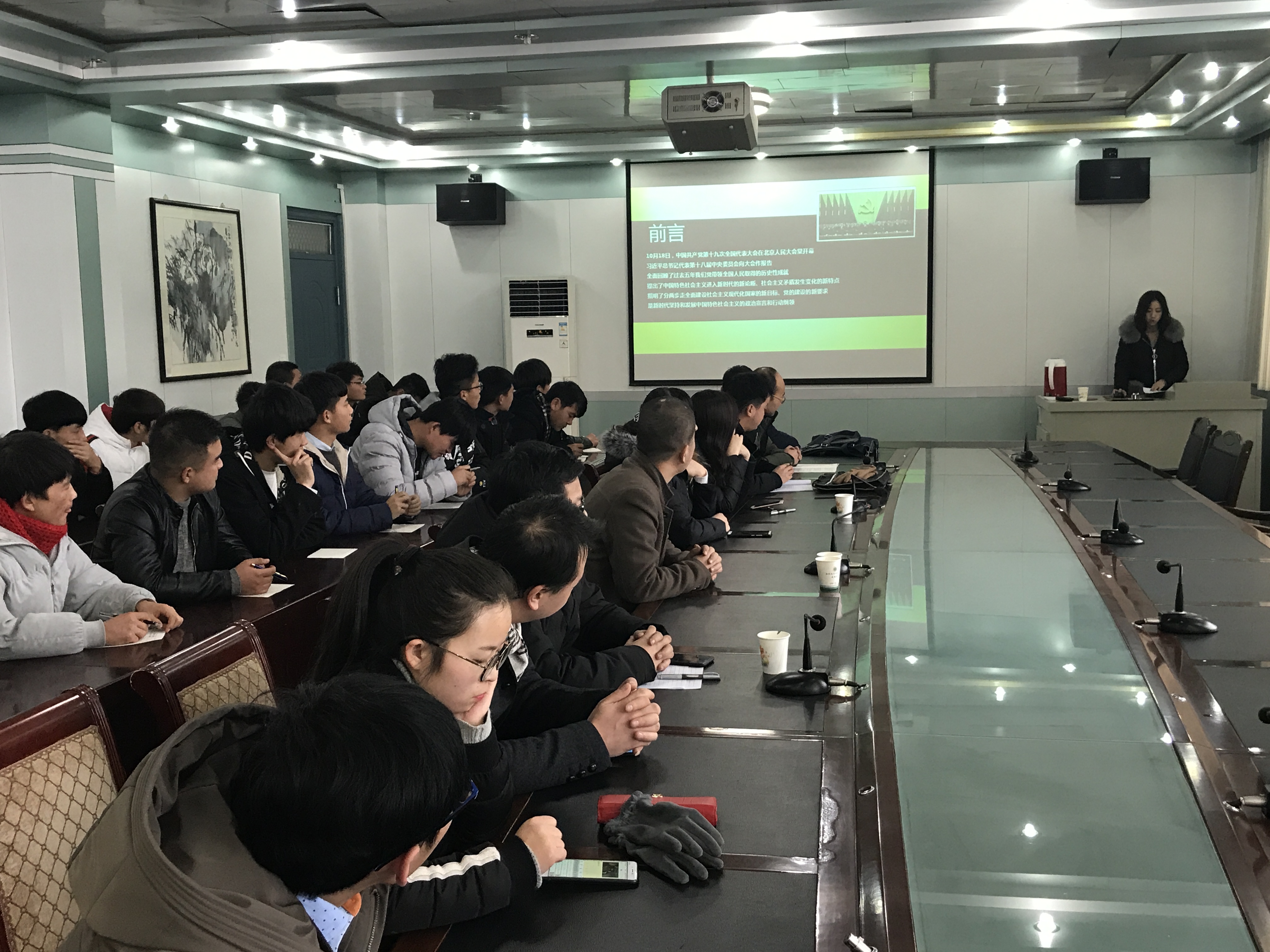 根據(jù)《中共武威職業(yè)學(xué)院委員會關(guān)于深入學(xué)習(xí)宣傳貫徹黨的十九大精神的通知》精神,1月4日下午,建筑工程系邀請思政教研室侯卿老師,在博學(xué)樓二樓會議室,為全系黨員、教師、入黨積極分子和團學(xué)干部做關(guān)于學(xué)習(xí)貫徹黨的十九大精神宣講。會議由系黨總支書記聶百勝主持。