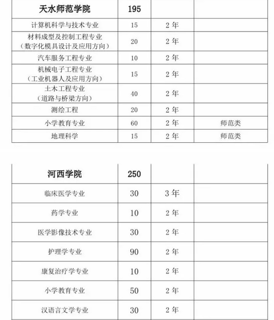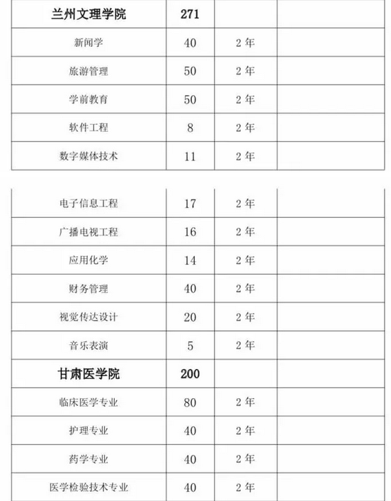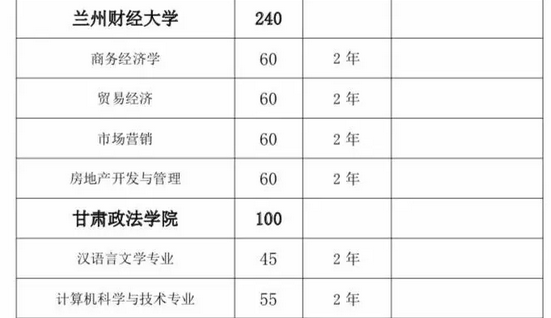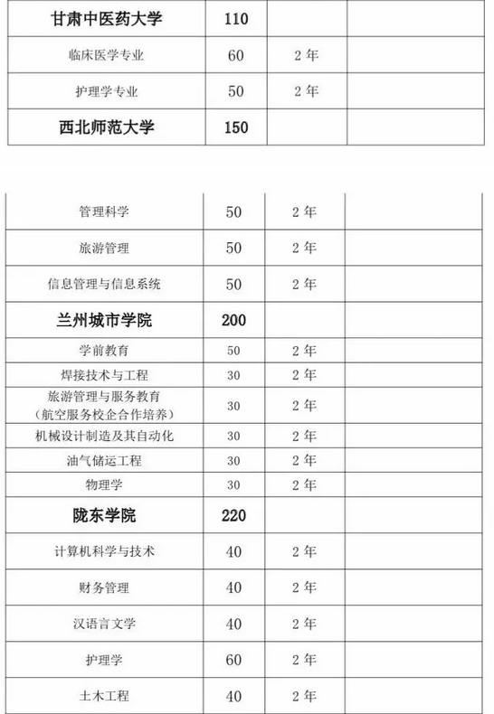 甘肅省2019年普通高?!皩I尽闭猩?jì)劃匯總表