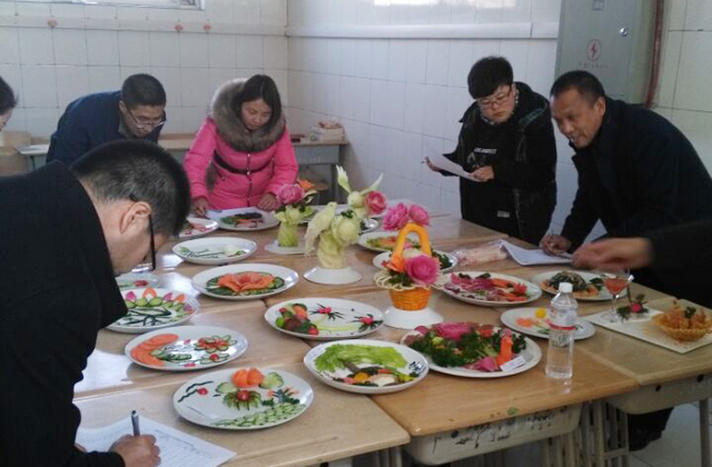 上午9:00—11:00中級烹調(diào)師理論考試在尚德樓115教室舉行,本次考試嚴(yán)格遵照人社局相關(guān)考試流程和要求,考試現(xiàn)場同學(xué)們沉著冷靜答題,沒有出現(xiàn)考生違規(guī)違紀(jì)現(xiàn)象。下午15:00—17:00實踐操作考試在經(jīng)濟管理系烹飪實訓(xùn)中心進行,從食品雕刻、冷菜拼盤、熱菜制作三個方面全面考核了考生的烹飪技能。經(jīng)過同學(xué)們刻苦的訓(xùn)練和充分的考前準(zhǔn)備,在實操考核階段同學(xué)們都顯得信心十足。第一環(huán)節(jié)結(jié)束后,一道道精美的冷菜拼盤呈現(xiàn)在大家眼前,表現(xiàn)出同學(xué)們精湛的刀工和構(gòu)圖能力,第二環(huán)節(jié)是熱菜部分,同學(xué)們調(diào)味準(zhǔn)確、火候到位、裝盤得當(dāng),充分展現(xiàn)了同學(xué)們嫻熟的烹飪技能。