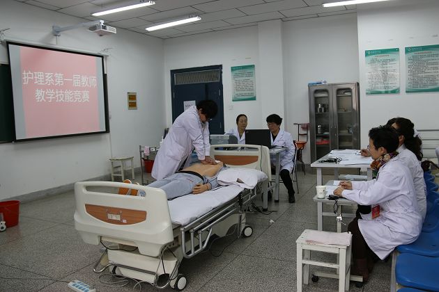 為提高教師的教學(xué)水平及實踐操作技能,促進(jìn)教師間相互學(xué)習(xí)交流,本著“以賽促學(xué),以賽促教,以賽強(qiáng)技”的宗旨,11月25日,護(hù)理系開展教師教學(xué)競賽,來自護(hù)理系的23位教師參加了本次比賽。教務(wù)處、直屬附屬醫(yī)院及護(hù)理系的專家擔(dān)任比賽評委。本次教學(xué)技能競賽分課堂教學(xué)和實踐教學(xué)技能兩種形式,其中,實踐競賽項目包括心肺復(fù)蘇技術(shù)、前臂骨折固定包扎技術(shù)、心電監(jiān)護(hù)操作、靜脈輸液、無菌操作、鋪備用床等六項內(nèi)容。