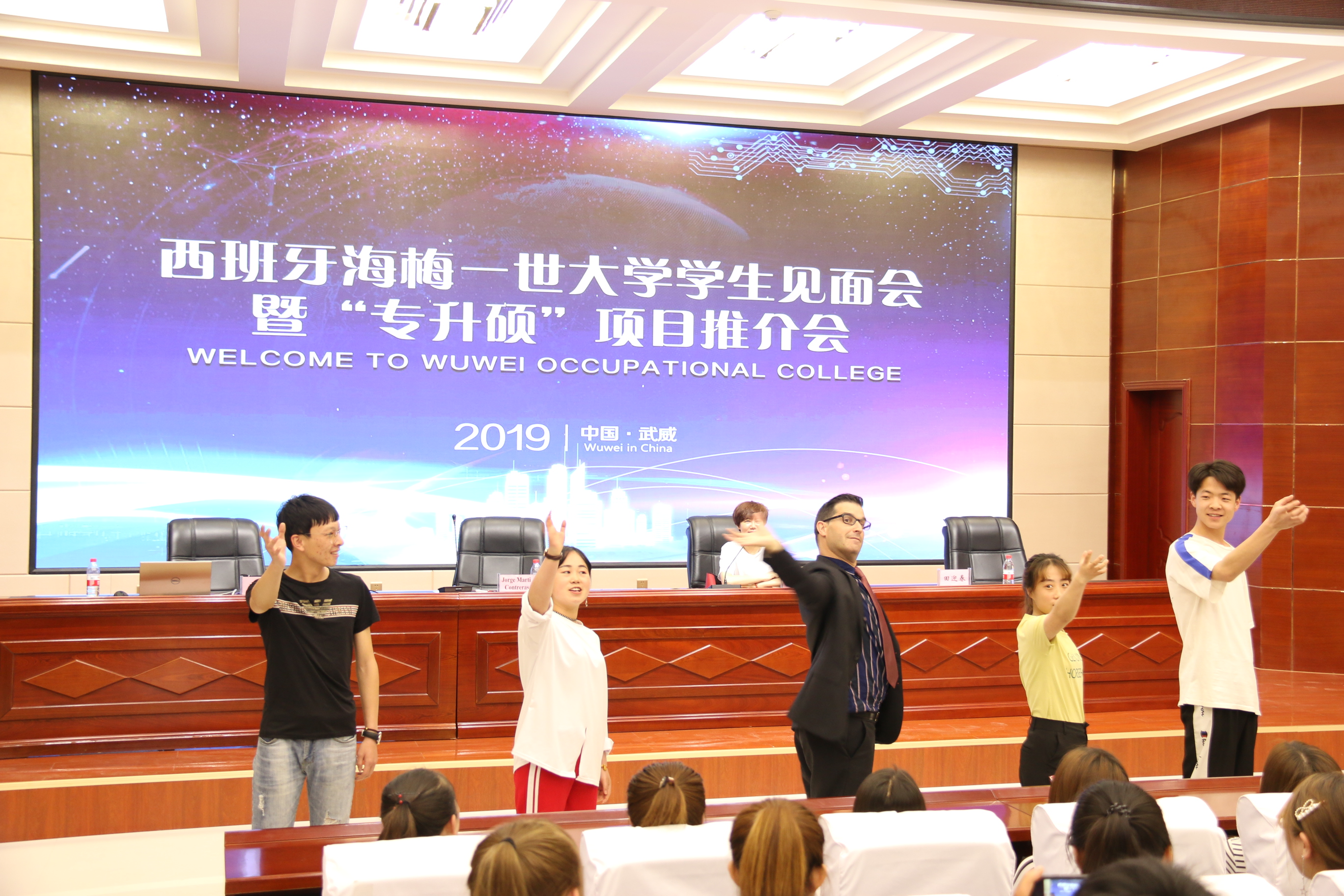 西班牙客人還到菁英廳參加了學(xué)院組織的學(xué)生見(jiàn)面會(huì)。Contreras 先生和同學(xué)們進(jìn)行了語(yǔ)言、歌曲、舞蹈雙向互動(dòng),讓在場(chǎng)所有同學(xué)體驗(yàn)了濃烈的西班牙異域文化,同學(xué)們近距離感受了西班牙客人的熱情奔放、幽默詼諧。Contreras 先生對(duì)學(xué)院學(xué)生的積極主動(dòng)、大膽參與互動(dòng)留下了深刻印象。護(hù)理系、人文藝術(shù)教育系、能源工程系、電子信息工程系等系學(xué)生代表參加活動(dòng)。