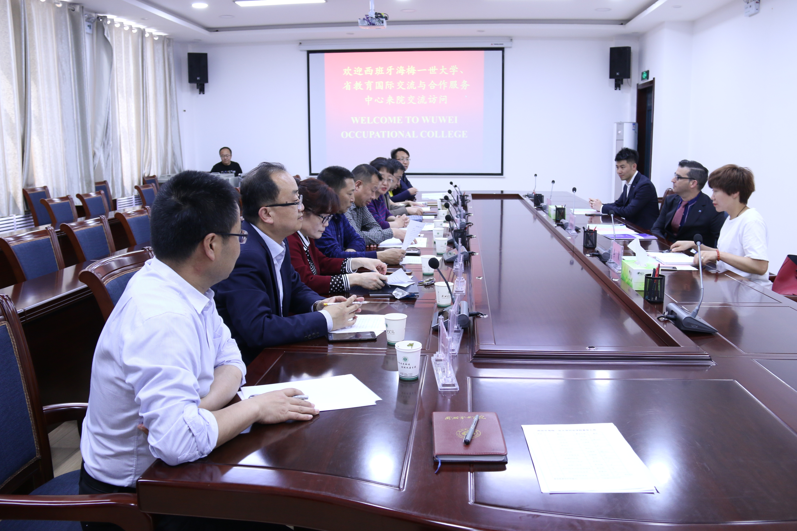 座談會(huì)上,田迎春代表全院師生對(duì)海梅一世大學(xué)回訪學(xué)院表示歡迎,對(duì)海梅一世大學(xué)時(shí)隔一年再次訪問(wèn)學(xué)院表示敬佩,對(duì)省國(guó)際交流與合作服務(wù)中心對(duì)學(xué)院的關(guān)心表示感謝,并向來(lái)訪客人簡(jiǎn)要介紹了學(xué)院建設(shè)發(fā)展情況、學(xué)科專業(yè)設(shè)置、學(xué)院國(guó)際交流與合作開展情況。來(lái)訪客人對(duì)學(xué)院友好熱情的工作安排表示感謝,對(duì)學(xué)院積極致力于開展國(guó)際合作與交流的努力和遠(yuǎn)見(jiàn)表示贊賞。賓主雙方通過(guò)PPT展示、VIDEO播放等形式介紹了各自基本情況,雙方共同希望能夠采取切實(shí)可行的舉措,進(jìn)一步深化務(wù)實(shí)合作,落實(shí)兩校簽署的合作框架協(xié)議。賓主雙方還就校際交流、師資互訪、語(yǔ)言培訓(xùn)、赴西班牙專升碩留學(xué)項(xiàng)目等共同關(guān)心的問(wèn)題進(jìn)行了深入交流。