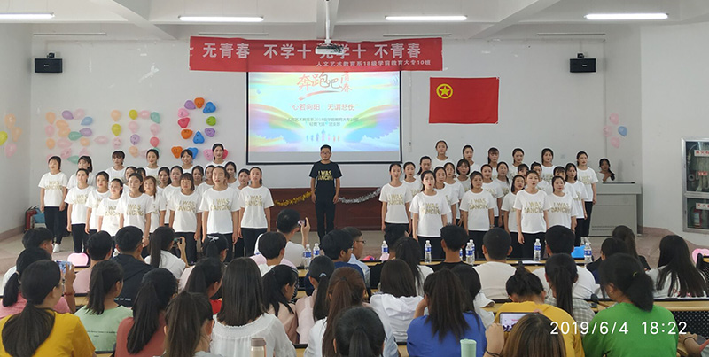 6月4日下午5點20分,人文藝術(shù)教育系2018級學(xué)前教育大專(10)班在勵勤樓階梯教室開展了活力團支部活力展示。
