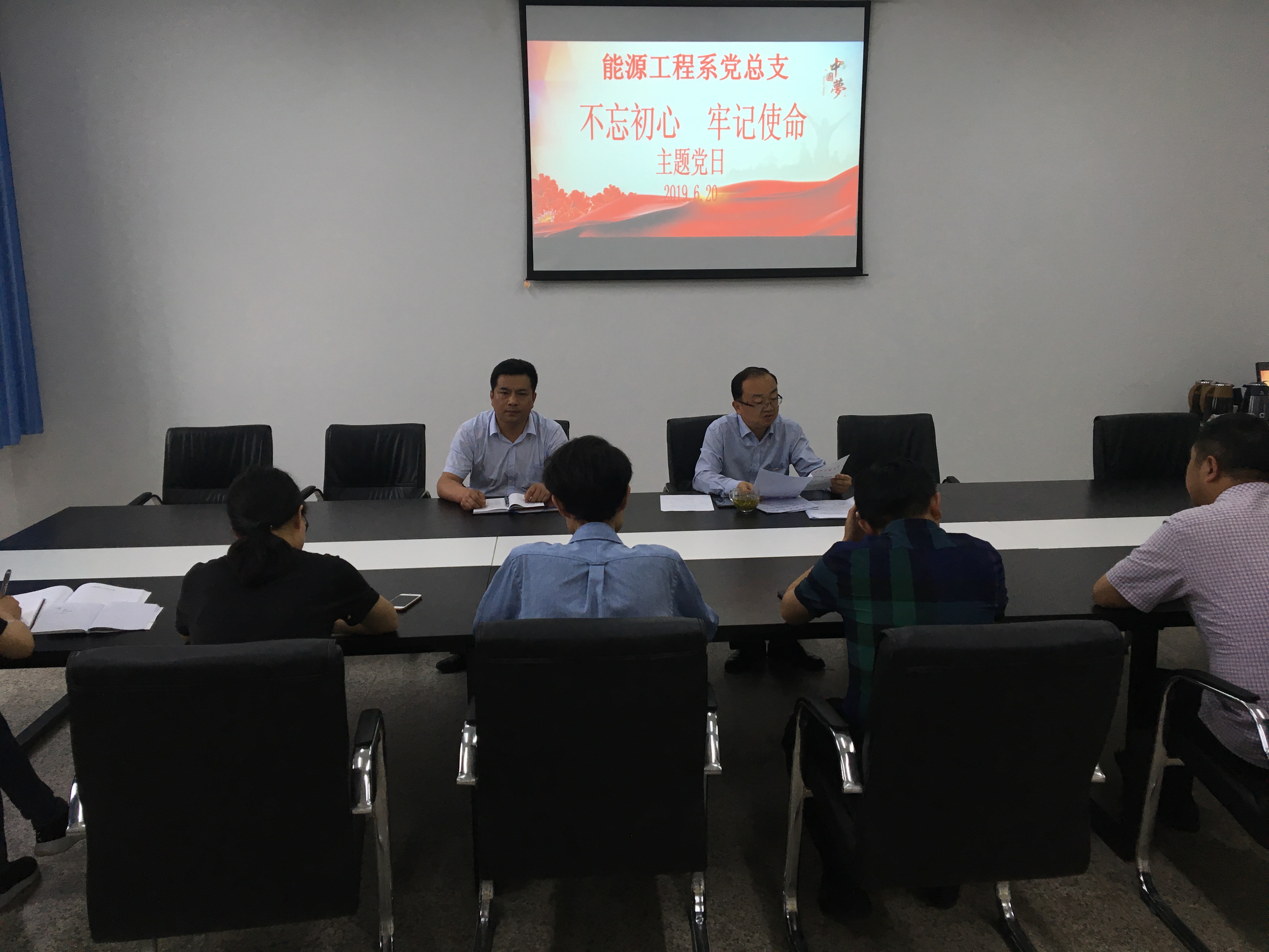 為慶祝中國共產(chǎn)黨成立98周年,不斷深入學(xué)習(xí)貫徹習(xí)近平新時(shí)代中國特色社會(huì)主義思想和黨的十九大精神,錘煉忠誠干凈擔(dān)當(dāng)?shù)恼纹犯瘢?月20日,能源工程系黨總支在行樹樓教學(xué)區(qū)404會(huì)議室開展“不忘初心、牢記使命”主題黨日活動(dòng)?;顒?dòng)由系黨總支書記黃文源主持,全體黨員參加了此次活動(dòng)。