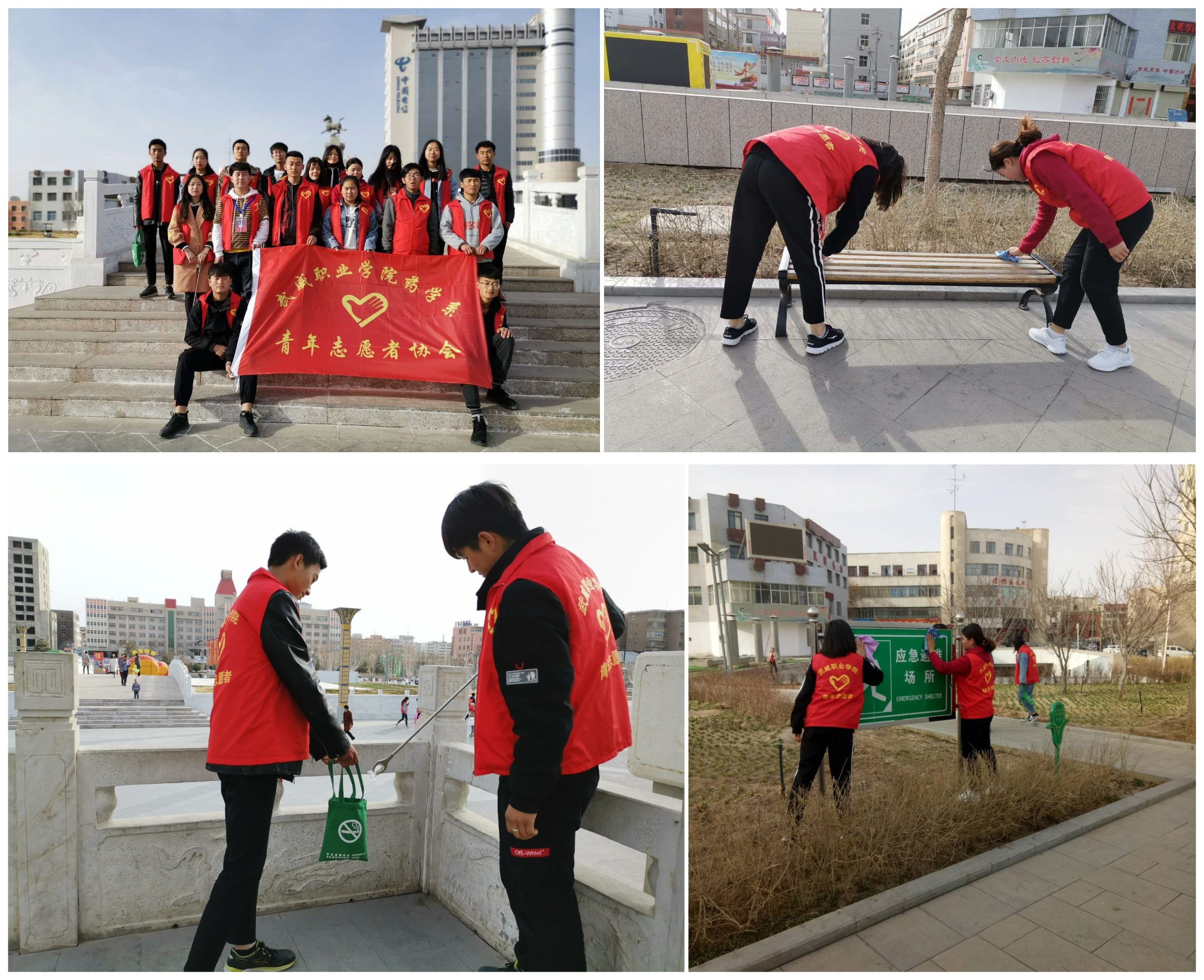 3月22日,青年志愿者在步行街文化廣場,開展“愛護(hù)公共設(shè)施人人有責(zé)”志愿服務(wù)活動,青年志愿者們通過擦健身器材、凳子等公共設(shè)施,宣講“愛護(hù)公共財物人人有責(zé)”理念。