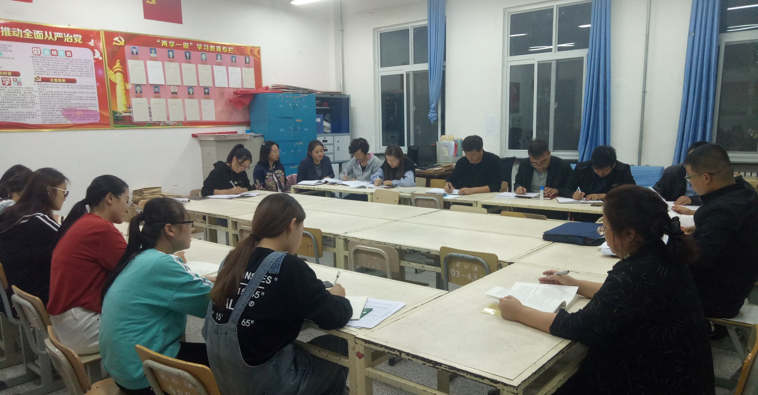 會議指出,開展“不忘初心、牢記使命”主題教育,是深化習(xí)近平新時代中國特色社會主義思想理論武裝的迫切需要,是推進(jìn)新時代黨的建設(shè)偉大工程的迫切需要,是保持黨同人民群眾血肉聯(lián)系的迫切需要。要充分認(rèn)識辦好理論學(xué)習(xí)讀書班,開展集中學(xué)習(xí)和專題研討的重要意義,把高質(zhì)量辦好讀書班作為深入學(xué)習(xí)貫徹習(xí)近平新時代中國特色社會主義思想的重要載體,作為貫徹落實黨中央、省市委和學(xué)院要求開展好主題教育的有力舉措,切實發(fā)揮黨員干部以上率下示范引領(lǐng)作用,進(jìn)一步提高政治站位、強化思想自覺,靜下心來學(xué)習(xí)、沉下心來思考,深入師生調(diào)研、認(rèn)真研討交流,全面增強理論學(xué)習(xí)的自覺性和緊迫感。