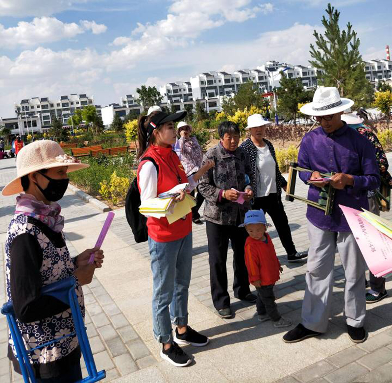 7月11日開始, 6名志愿者在指導(dǎo)老師的帶領(lǐng)下分別進(jìn)入倉巷社區(qū)銀城花園、天馬湖公園、古浪縣綠洲移民點、永豐鎮(zhèn)、發(fā)放鎮(zhèn)、天馬社區(qū)、清源鎮(zhèn)幸福家園社區(qū)、金沙社區(qū)、福利路社區(qū)、古城鎮(zhèn)祁山村、武南鎮(zhèn)、清水鎮(zhèn)等地開展了宣講實踐活動。通過擺放展板、實地講解、發(fā)放禁毒防艾宣傳材料、問卷調(diào)查、個案訪談、資料收集等方式,深入了解實踐地禁毒防艾最新形勢、相關(guān)工作開展情況、存在的實際問題。