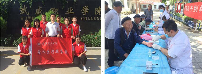 2019年暑假期間,武威職業(yè)學院護理系積極響應團中央、院團委對青年大學生暑期“三下鄉(xiāng)”社會實踐活動的號召,組織10名骨干學生成立了“愛心醫(yī)療服務團”,7月11始,由指導教師楊棟帶隊趕赴甘肅省武威市涼州區(qū)高壩鎮(zhèn)中心敬老院、古浪縣黃花灘鎮(zhèn)綠洲扶貧移民點、武威市涼州區(qū)高壩鎮(zhèn)蜻蜓村、武威市黃羊鎮(zhèn)五連扶貧移民點(榮昌村)、武威市涼州區(qū)福利路社區(qū)、武威市涼州區(qū)華閏庭院、武威市社會福利院等多地開展了為期七天的醫(yī)療社會實踐活動。