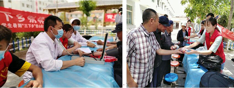 此次醫(yī)療服務活動共免費測量血壓約500余人次,檢測血糖200余人次,發(fā)放藥品200余袋,問診病患200余人次,填寫調(diào)查問卷300余份,發(fā)放宣教資料800余張。7月17日在“三下鄉(xiāng)”社會實踐總結會議上,團隊的每位成員都分享了自己的心得和體會,大家一致認為,本次“三下鄉(xiāng)”活動不但磨練了意志,也培養(yǎng)了團隊協(xié)作精神,為將來更好的服務基層奠定了良好的基礎,實現(xiàn)了“在實踐中受教育、長知識、學本領、增才干”的目的。楊棟老師以“讀萬卷書不如行萬里路”為契入點分別從醫(yī)技、醫(yī)患、協(xié)作、分工、宣傳等不同方面,對本次暑期“三下鄉(xiāng)”醫(yī)療服務活動進行了深入總結。為期一周的醫(yī)療服務很快就結束了,但“三下鄉(xiāng)”志愿活動的精神并沒有真正結束,志愿活動能讓更多的人從中受到感染,感受到社會的關懷、人世的美好。