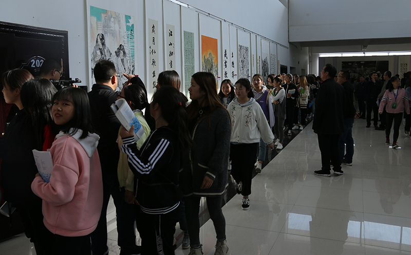 趙明宣布“不忘初心,牢記使命”武威美術(shù)書(shū)法作品交流展開(kāi)幕。隨后,學(xué)院師生觀看欣賞了展覽作品。