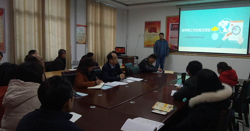 接著,付江鵬老師通過精心制作的PPT與在座的老師們分享了中科低碳新能源技術(shù)學(xué)院班導(dǎo)師工作經(jīng)驗,付老師從我國班導(dǎo)師的淵源、導(dǎo)師制的核心內(nèi)容即“三學(xué)三導(dǎo)四航”、導(dǎo)師制類型及本人開展的思想引導(dǎo)、學(xué)業(yè)指導(dǎo)、生涯規(guī)劃、組隊競賽等班導(dǎo)師工作做了精彩交流,通過經(jīng)驗交流,大家對班導(dǎo)師工作有了更清晰的認(rèn)識,也被付老師的工作精神所感動。
