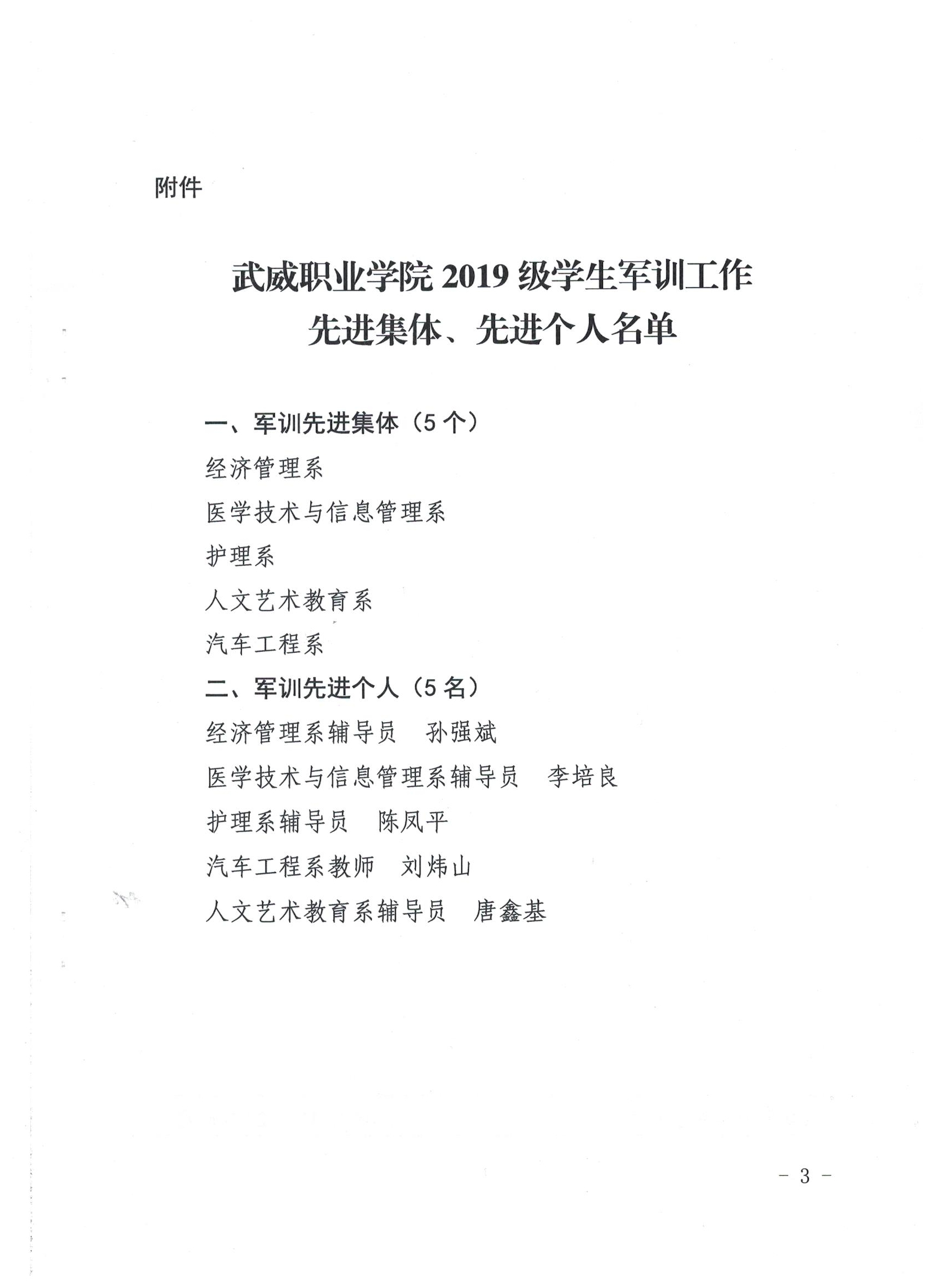 武威職業(yè)學院關于表彰2019級學生軍訓工作先進集體、先進個人的決定