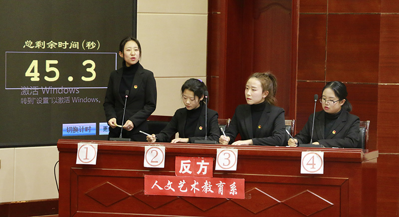 經(jīng)過四輪11場次的比賽,電子信息工程系代表隊和人文藝術教育系代表隊進入最后決賽。比賽現(xiàn)場,正方電子信息工程系代表隊和反方人文藝術教育系代表隊針對企業(yè)用人以“才”還是以“德”為先拉開激烈交戰(zhàn)。雙方選手在立論、駁立論、攻辯等各個環(huán)節(jié)中思路清晰,引經(jīng)據(jù)典,字字珠璣,使現(xiàn)場氣氛迅速升溫。在自由辯論環(huán)節(jié)中,雙方選手就辯題展開更深層次的辯論,個個妙語連珠、你來我往、侃侃而談,場下掌聲連連。整場比賽高潮迭起,精彩不斷,觀眾也積極參與互動,現(xiàn)場氣氛十分活躍。經(jīng)過激烈的角逐,人文藝術教育系代表隊表現(xiàn)更勝一籌,獲得本屆辯論賽冠軍,電子信息工程系榮獲本屆比賽亞軍,醫(yī)學技術與信息管理系榮獲季軍,能源工程系榮獲 “優(yōu)秀辯隊”,人文藝術教育系楊婉瑩、電子信息工程系楊曉紅和能源工程系萬寶紅3位同學榮獲 “最佳辯手”。