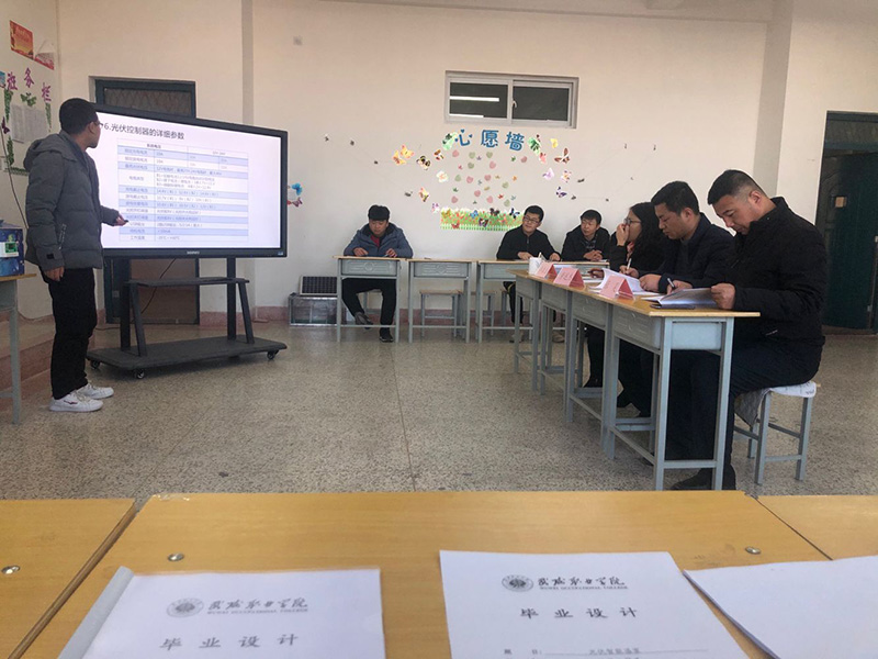 2019年12月17日上午,能源工程系在行樹樓403、405教室開展了2020屆畢業(yè)生畢業(yè)設(shè)計答辯活動,2020屆光伏發(fā)電技術(shù)與應(yīng)用專業(yè)全體畢業(yè)生分11個小組參加了本次畢業(yè)設(shè)計答辯。