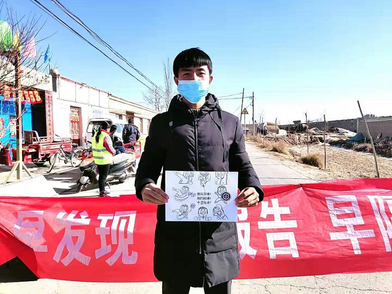 人文藝術(shù)教育系團(tuán)委副書記孫國祥,家在甘肅省定西市通渭縣平襄鎮(zhèn)中林村,在近期的防控疫情狙擊戰(zhàn)中,自愿參與到當(dāng)?shù)匾咔榉揽毓ぷ髦?,協(xié)助工作人員檢查過往車輛,并將他之前儲存的未拆封醫(yī)用口罩捐贈給一起的工作人員。他表示,縱有疫情可怕似虎,亦有青年為國奉獻(xiàn)。打贏這場大仗、硬仗,每一個中國人都應(yīng)有防控疫情的責(zé)任,要有主動行動的自覺。武漢加油,中國加油!