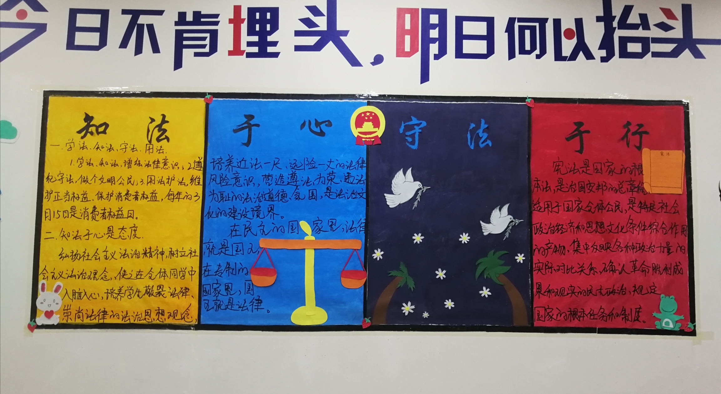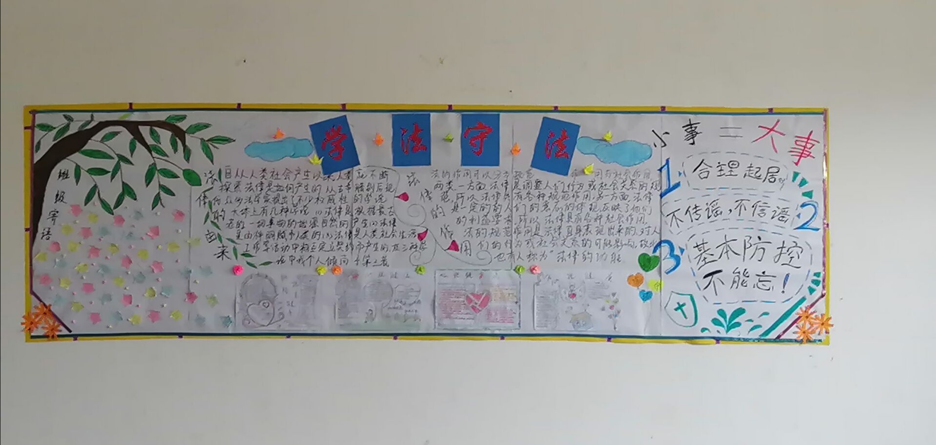 ?此次主題板報活動的開展,進一步充實了板報的宣傳教育功能,展現(xiàn)了我系學(xué)子良好的精神風(fēng)貌,培養(yǎng)了大學(xué)生知法守法的優(yōu)良品質(zhì),營造了健康、積極進取的學(xué)風(fēng),更加提升了學(xué)生的法律常識。我系將借此活動為契機,加強我系學(xué)生的法律道德意識,引導(dǎo)我系學(xué)生知法于心,守法于行。