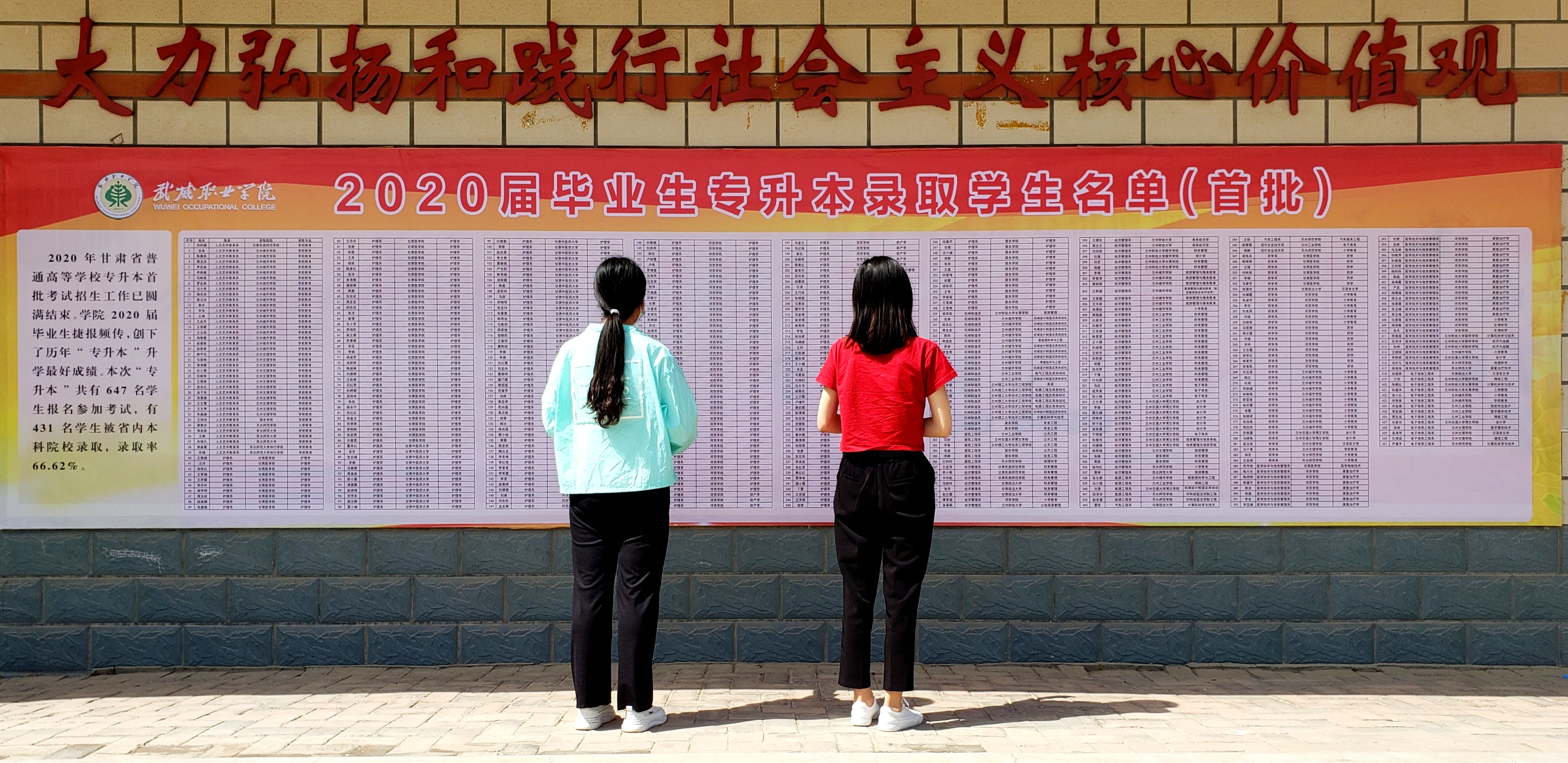 2020年甘肅省普通高等學(xué)校專升本首次考試招生工作已圓滿結(jié)束。學(xué)院2020屆畢業(yè)生捷報(bào)頻傳,創(chuàng)下了歷年“專升本”升學(xué)的最好成績(jī)。本次“專升本”共有647名學(xué)生報(bào)名參加考試,有431名學(xué)生被省內(nèi)本科院校錄取,錄取率為66.62%。