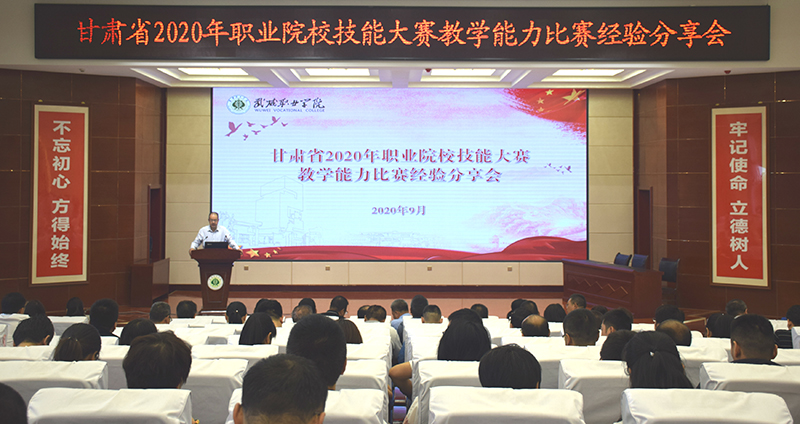 2020年9月2日上午,學院在菁英廳舉辦甘肅省2020年職業(yè)院校技能大賽教學能力比賽經驗分享會,學院各級參賽隊員、院領導、中層以上管理干部、教學能力比賽指導組成員以及自愿報名參加分享會人員共210人參加,會議由學院黨委副書記翟存祥主持。