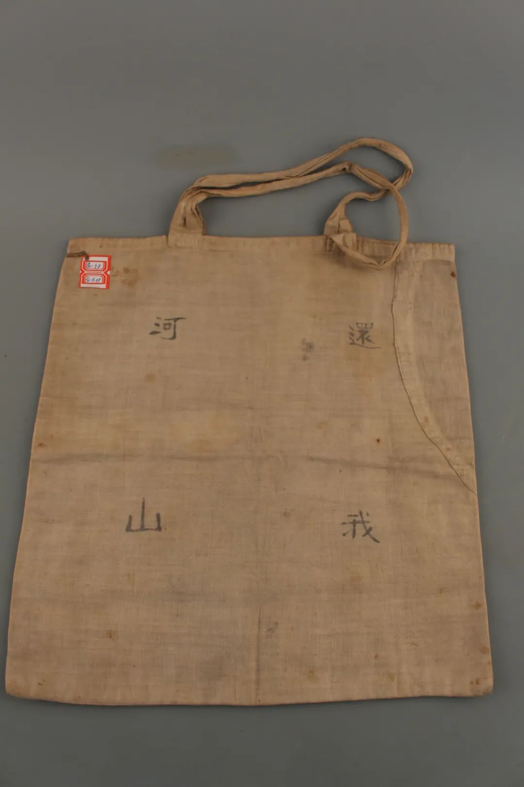 “還我河山”,車向忱夫婦用過的手提兜上,四個字依然清晰?!熬乓话恕笔伦兒?,東北淪陷,教育家車向忱多次往返關內(nèi)外,積極組織抗日救亡運動,還創(chuàng)辦了許多平民學校。這個手提兜原為白色,歷經(jīng)歲月和戰(zhàn)火,現(xiàn)已陳舊發(fā)黃。布兜正面繡有黑色“收復東北失地,1938”字樣,背面寫有“還我河山”字樣。