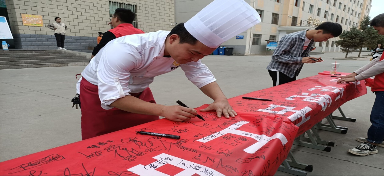 為了大力加強(qiáng)廣大師生節(jié)約糧食和光盤行動的意識,培養(yǎng)健康文明的就餐習(xí)慣。2020年9月16日武威職業(yè)學(xué)院機(jī)械制造系在學(xué)校食堂門口舉行了以“節(jié)約糧食?儉以養(yǎng)德”為主題的簽名活動。