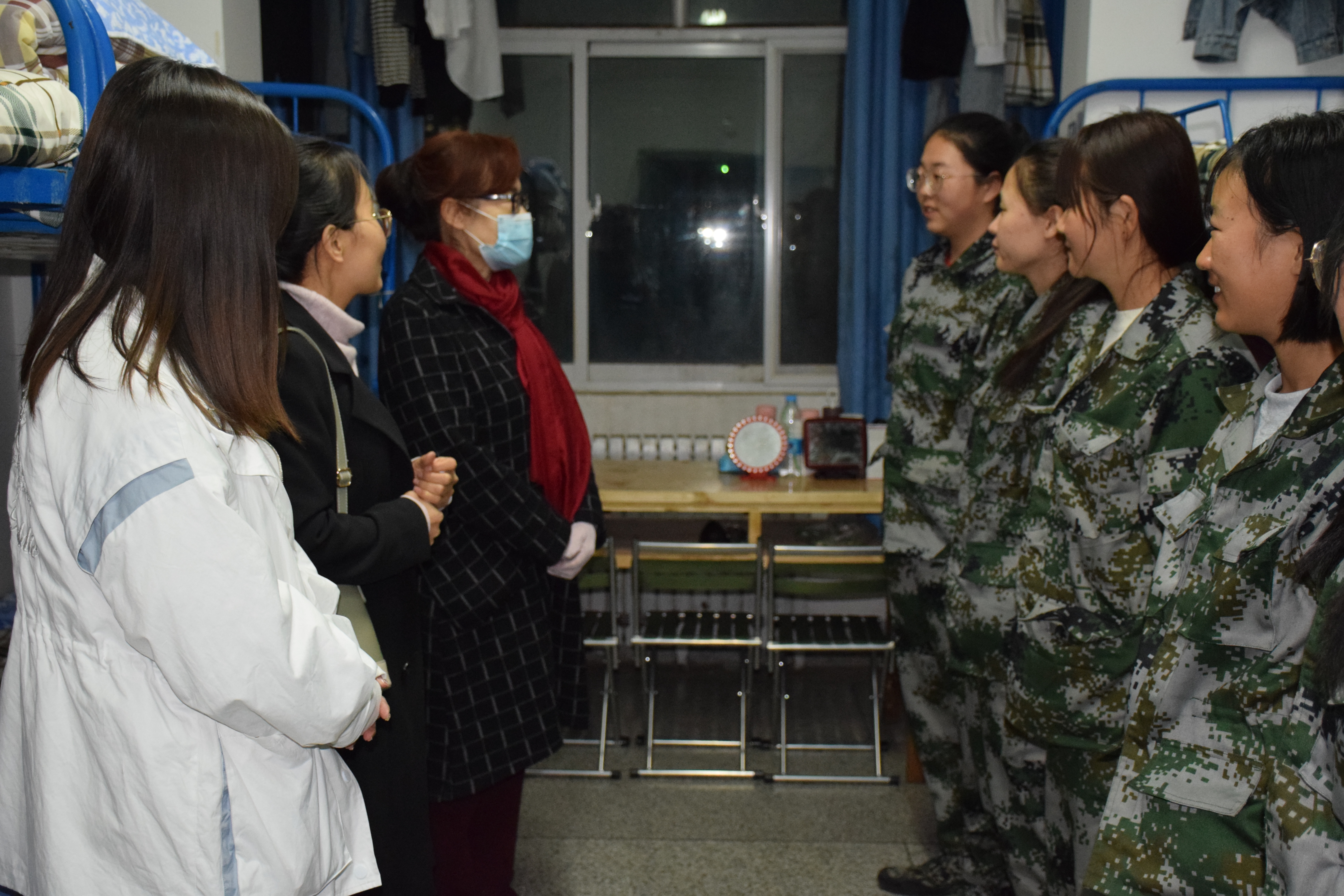 ????? 10月14日晚,現(xiàn)代農(nóng)業(yè)技術(shù)系全體新生班主任在系黨總支書(shū)記晏素珍同志的帶領(lǐng)下,深入新生宿舍走訪慰問(wèn)新生。