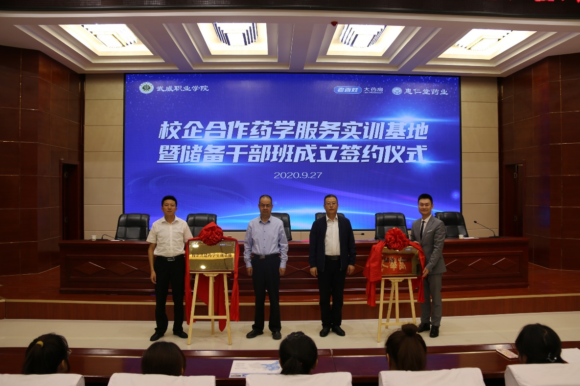 2020年9月27日上午,學(xué)院與老百姓集團(tuán)﹒蘭州惠仁堂藥業(yè)連鎖有限責(zé)任公司“校企共建藥學(xué)實(shí)訓(xùn)基地”暨“老百姓儲(chǔ)備干部班”成立簽約儀式在大學(xué)生活動(dòng)中心菁英廳舉行。儀式由藥學(xué)系主任魏潤(rùn)明主持,學(xué)院黨委副書記翟存祥、老百姓集團(tuán)總部和蘭州惠仁堂藥業(yè)公司相關(guān)領(lǐng)導(dǎo)出席,藥學(xué)系教師代表和2019級(jí)藥學(xué)、中藥學(xué)專業(yè)學(xué)生代表共計(jì)220人參加了簽約儀式。