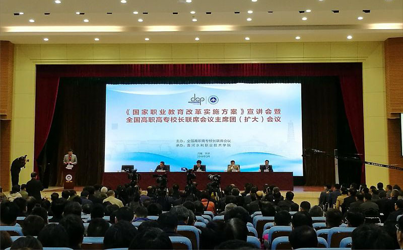 近日,《國家職業(yè)教育改革實施方案》宣講會暨全國高職高專校長聯(lián)席會議主席團(擴大)會議在黃河水利職業(yè)技術學院召開。教育部職業(yè)教育與成人教育司副司長謝俐出席會議。學院黨委書記、院長趙明與全國高職高專校長聯(lián)席會議主席團成員、全國高職高專院校負責人代表等700余人參加會議。會議由全國高職高專校長聯(lián)席會議主席、中國職業(yè)技術教育學會副會長、天津職業(yè)大學原校長董剛主持。