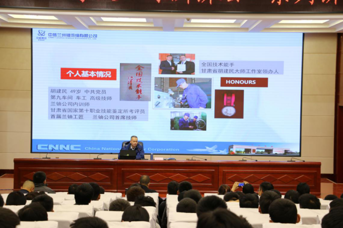 報(bào)告會(huì)上,胡建民大師首先向師生介紹了蘭鈾公司的光輝歷程、歷史貢獻(xiàn)、公司概況,然后圍繞個(gè)人成長經(jīng)歷、學(xué)習(xí)交流工作培訓(xùn)、工作室工作方向三個(gè)方面深入淺出地講述了自己的工匠之路,為同學(xué)們在專業(yè)技能、就業(yè)指導(dǎo)、職業(yè)素養(yǎng)等方面分享了自己的生活、工作經(jīng)驗(yàn),師生們獲益良多。