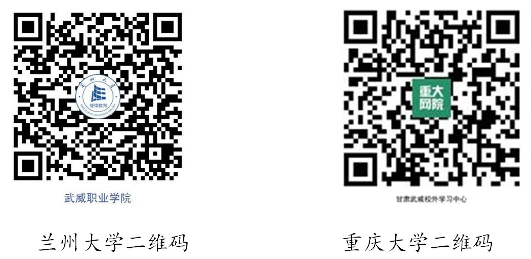 2.蘭州大學(xué)、重慶大學(xué)網(wǎng)絡(luò)教育報(bào)名老師電話(劉老師:18993563255)。疫情期間,為減少人員接觸,選擇報(bào)考蘭州大學(xué)、重慶大學(xué)的學(xué)員可通過二維碼預(yù)報(bào)名,預(yù)報(bào)名后等報(bào)名人員電話通知后再來學(xué)校進(jìn)行信息確認(rèn)和提交報(bào)名材料