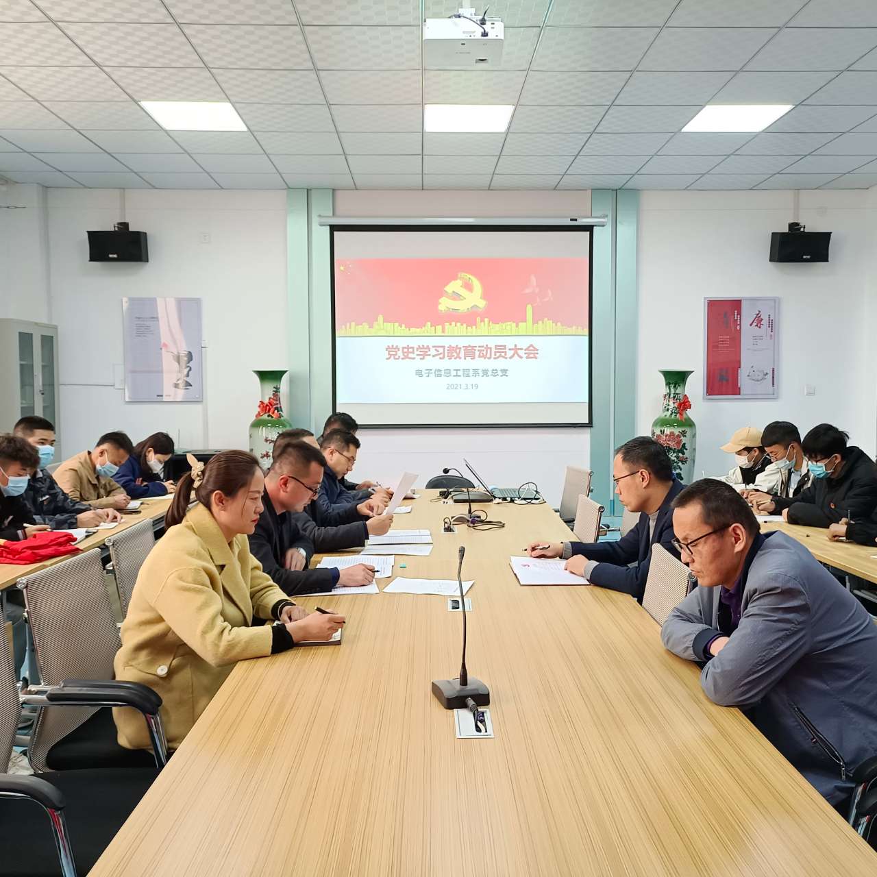 根據(jù)學(xué)院黨委統(tǒng)一安排部署,3月19日,電子信息工程系黨總支召開(kāi)黨史學(xué)習(xí)教育動(dòng)員大會(huì),全體教師黨員、學(xué)生入黨積極分子參加會(huì)議。會(huì)議由黨總支書(shū)記袁青年主持。