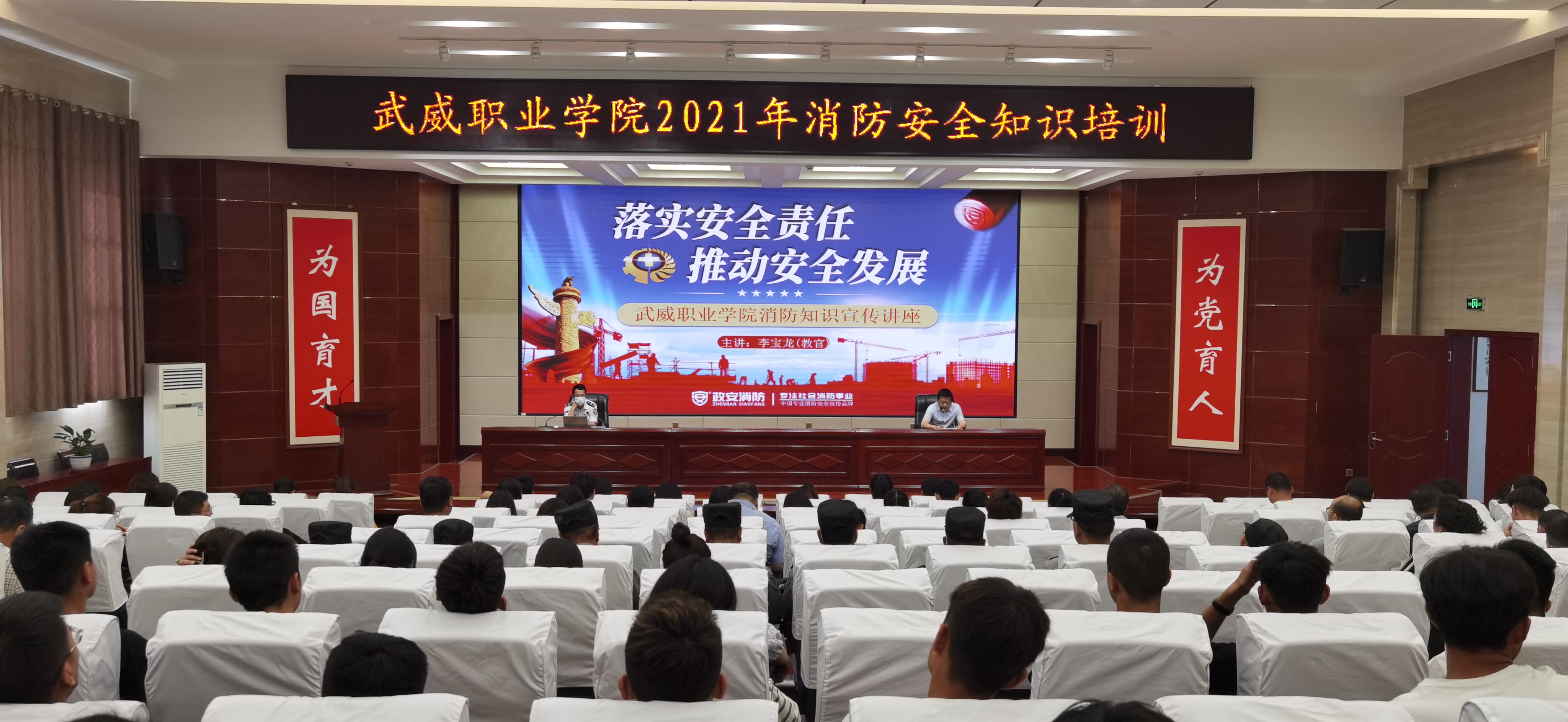 6月21日下午,學(xué)院在菁英廳舉辦了“安全生產(chǎn)月”消防安全知識(shí)培訓(xùn)。蘭州政安消防教官李寶龍應(yīng)邀作了“落實(shí)安全責(zé)任,推動(dòng)安全發(fā)展”專題講座。學(xué)院各部門、教學(xué)院系安全信息員、實(shí)驗(yàn)室管理員、近三年新入職教師及學(xué)院重點(diǎn)崗位工作人員、團(tuán)學(xué)干部220余人參加了培訓(xùn)。