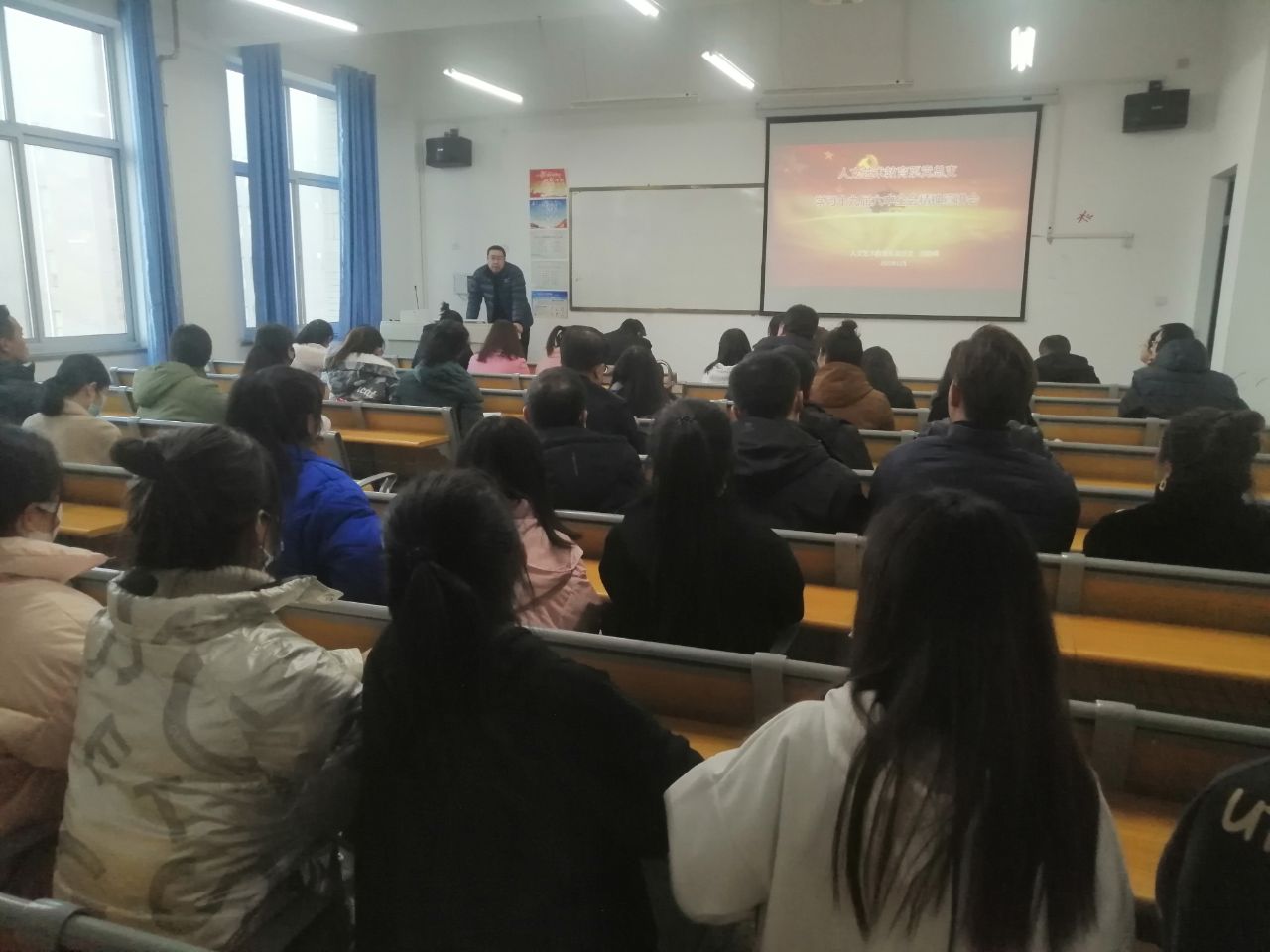 為深入學(xué)習(xí)宣傳貫徹中國共產(chǎn)黨十九屆六中全會(huì)精神,把全系師生的思想統(tǒng)一到全會(huì)精神上來,把智慧和力量凝聚到實(shí)現(xiàn)全會(huì)確定的各項(xiàng)目標(biāo)任務(wù)上來。2021年12月9日人文藝術(shù)教育系舉辦十九屆六中全會(huì)精神宣講報(bào)告會(huì),由人文藝術(shù)教育系黨總支書記胡靜峰同志在勵(lì)勤樓309多媒體教室為全體黨員作了一場(chǎng)有思想、有溫度、有筋骨、接地氣的理論宣講報(bào)告,人文藝術(shù)教育系全體教師、輔導(dǎo)員、學(xué)生代表和外聘教師近百人參加了報(bào)告會(huì)。