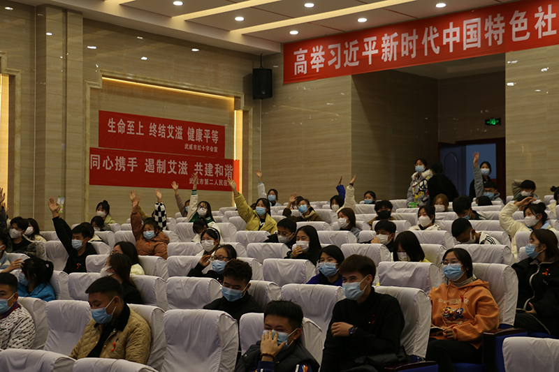 市疾控中心艾防科段曉虹主任和市第二人民醫(yī)院俞文麗主任分別就艾滋病預(yù)防與控制、hpv檢測(cè)與臨床應(yīng)對(duì)進(jìn)行了詳細(xì)的普及講授,內(nèi)容豐富、講解生動(dòng)、意義深刻,使學(xué)生充分認(rèn)識(shí)到艾滋病的嚴(yán)重危害,切實(shí)掌握艾滋病預(yù)防知識(shí),消除對(duì)艾滋病的恐懼心理,提高自身保護(hù)意識(shí)和防范能力??破罩v座結(jié)束后,全場(chǎng)學(xué)生踴躍加入了有獎(jiǎng)知識(shí)競(jìng)答,現(xiàn)場(chǎng)氣氛熱烈,學(xué)生熱情高漲,很好的調(diào)動(dòng)了學(xué)生主動(dòng)掌握防艾知識(shí)的積極性。