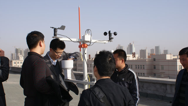 本次培訓(xùn)旨在提高教師對新進(jìn)實(shí)驗(yàn)設(shè)備的熟悉程度,解答實(shí)驗(yàn)過程存在的問題。設(shè)備廠家北京中鼎科技有限公司的技術(shù)人員為各位參加培訓(xùn)的老師進(jìn)行了講解和介紹。此次新進(jìn)的實(shí)驗(yàn)設(shè)施包括太陽能光伏發(fā)電應(yīng)用平臺、太陽能光熱集熱器、氣象監(jiān)控站、太陽輻射能測量平臺、集熱管性能檢測平臺等專業(yè)相關(guān)的實(shí)驗(yàn)設(shè)備。廠家的技術(shù)人員演示了太陽能光伏發(fā)電設(shè)備在太陽能蓄電池、太陽能離網(wǎng)并網(wǎng)發(fā)電方面的應(yīng)用,并展示了氣象監(jiān)控站實(shí)時(shí)監(jiān)控的氣象數(shù)據(jù)。老師們在技術(shù)人員的帶領(lǐng)下來到了氣象監(jiān)控設(shè)備及太陽能輻射能測量設(shè)備安放的平臺,近距離的觀察了監(jiān)控設(shè)備的安裝和運(yùn)行,并詢問了監(jiān)控設(shè)備的使用和維護(hù)的注意事項(xiàng)。