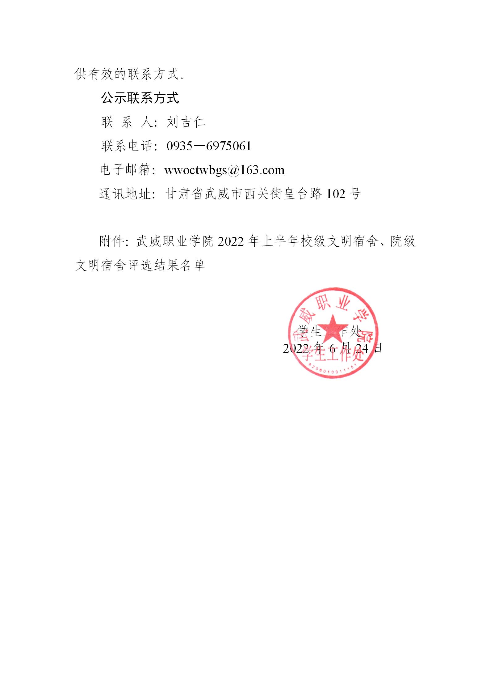 關(guān)于武威職業(yè)學(xué)院2022年上半年校級文明宿舍、院級文明宿舍評選結(jié)果的公示