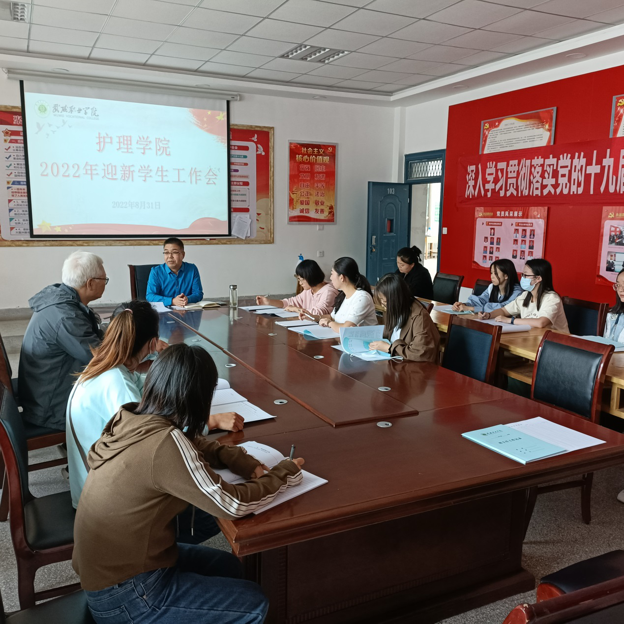 為確保2022級(jí)新生入學(xué)工作安全、有序、高效進(jìn)行,8月31日,護(hù)理學(xué)院在明遠(yuǎn)樓103會(huì)議室召開2022年迎新學(xué)生工作部署專題會(huì)議。護(hù)理學(xué)院黨總支書記張建輝出席會(huì)議,會(huì)議由護(hù)理學(xué)院分團(tuán)委書記楊杰主持,全體輔導(dǎo)員和新生班主任參加了會(huì)議。